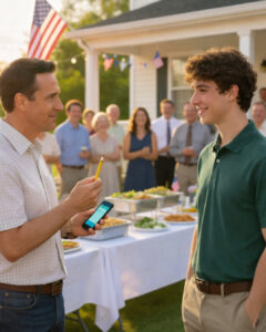 The relatives were thick in the yard—people I saw twice a year and never on purpose. The kind of family that only shows up when there’s food and photos and a reason to act like they care. They hovered around the catered buffet in their summer dresses and golf polos, paper plates piled high, talk loud, laughter easy.