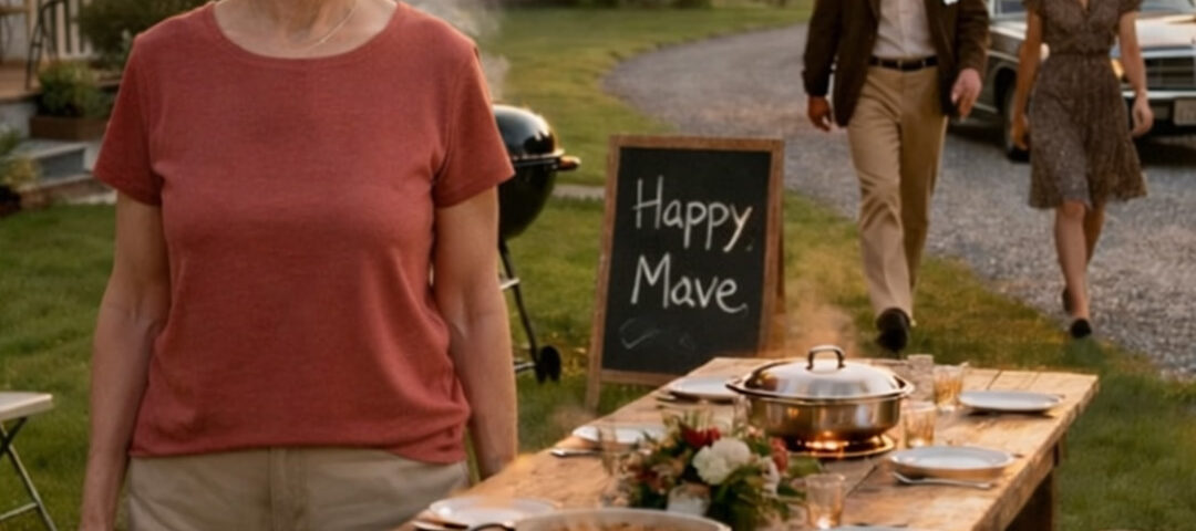 One second it was warm from the iron, folded like a promise over the back of Mave’s chair—my last neat little touch before the guests arrived. The next, it slid down in slow motion and hit the grass with a soft, humiliating collapse, like the yard itself had exhaled and decided the truth deserved to land first.