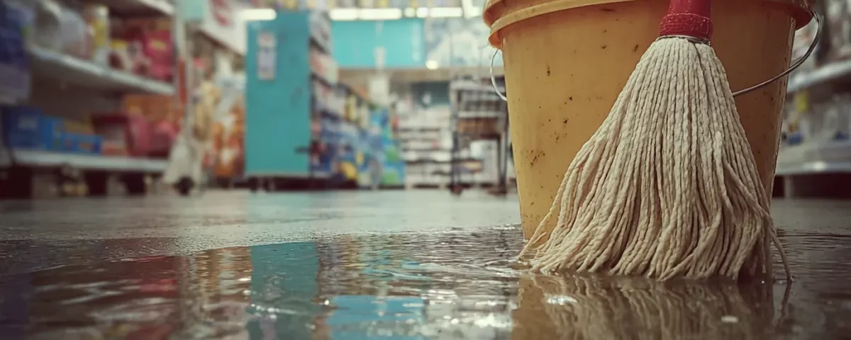 Down the next aisle, a woman in a sleek black coat and designer heels stood beside a spilled latte and a mop bucket filled with murky water. She was tall, perfectly styled, and the kind of woman who looked like she walked through life expecting everyone to move out of her way.
