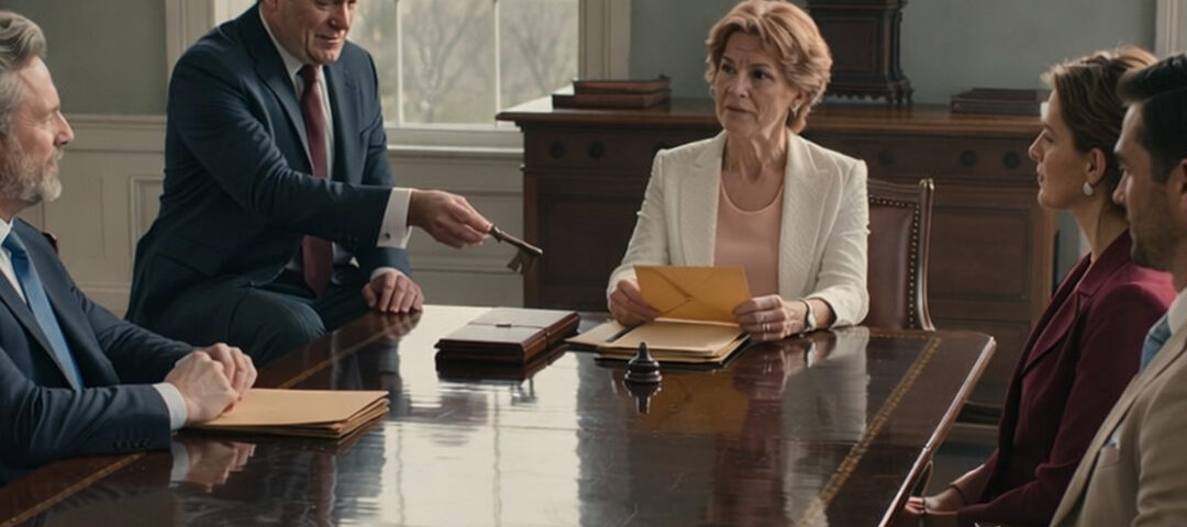 Marcus slid a brown envelope across the polished conference table. His hand trembled slightly as he did so.